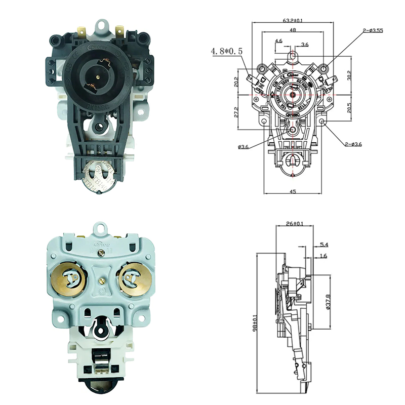 El acoplador antisecado funciona como una conexión y una interfaz de detección entre el cuerpo del hervidor y su base de alimentación. Consta de contactos conductores, elementos termosensibles y mecanismos de bloqueo mecánicos alojados dentro de una carcasa resistente al calor. Cuando el hervidor se coloca sobre la base, el acoplador establece contacto eléctrico para alimentar el elemento calefactor. Al mismo tiempo, su sensor de temperatura incorporado monitorea continuamente la condición térmica de la placa base. La combinación de funciones eléctricas y térmicas le permite detectar aumentos anormales de temperatura que ocurren cuando el agua es insuficiente o ausente.